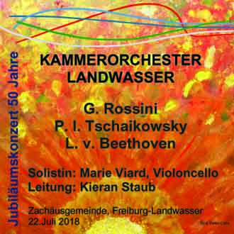 50 Jahre Kammerorchester Landwasser Jubilaeumskonzert Freiburg, 07/2018 G. Rossini: Ouverture zu Die Italienerin in Algier P. Tschaikowsky: Rokoko Variationen, op.33 L. v.Beethoven: Sinfonie Nr.1 C-Dur, op.21 Kammerorchester Landwasser Solistin: Marie Viard, Violoncello Leitung: Kieran Staub 07/2018 Preis: EUR 5,- zzgl. Versandkosten |